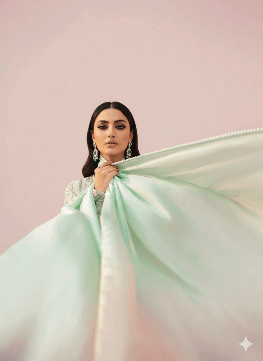 The tie-dye silk dupatta with pearl finishing is my favorite part. It adds a soft shimmer and ties the whole look together.