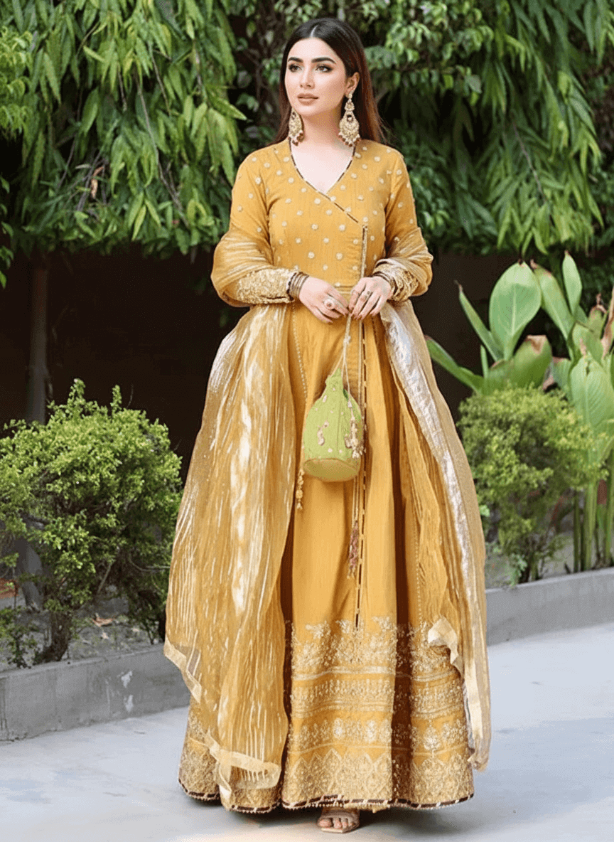 | Fabric | Anghrakha: Korean Raw Silk / Pants: Pk raw silk / Dupatta: Organza |